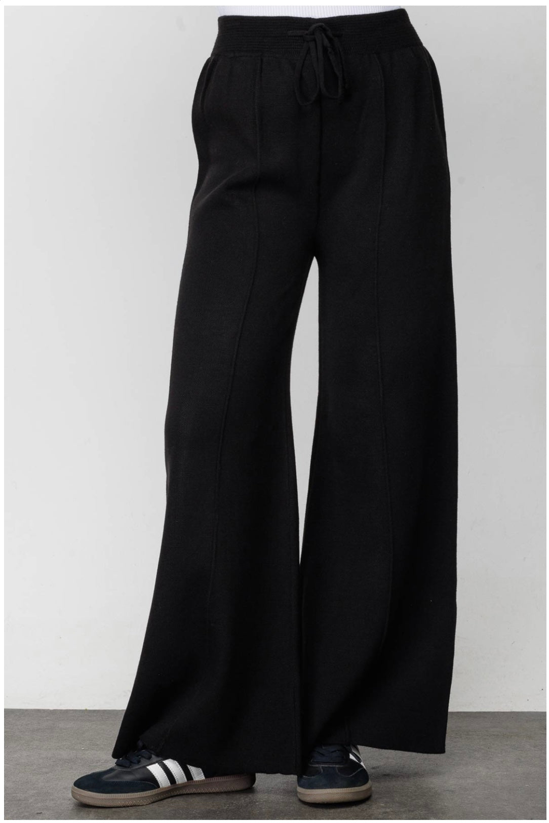 - Hohe Taille, Taillengummi und Seildetail (es gibt eine Stretchzugabe auf dem Gummizug an der Taille)